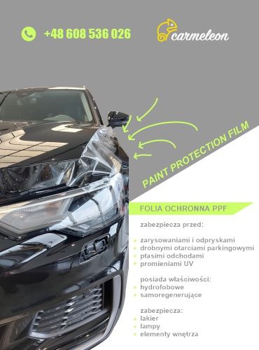 Folia ochronna, zabezpieczająca lakier pojazdu przed zarysowaniami, odpryskami, ptasimi odchodami i promieniami UV. Ma właściwości hydrofobowe i samoregenerujące.